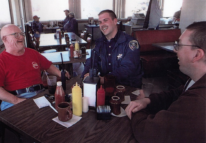 john with cop buddies Published on February 2, 2014 in The story of Johnny Krieger and the community that loved himFull resolution (724 × 501) ← Previous Next → John shares a laugh with his policeman buddies, Chad Fulkerson and Tony Helfrich, at the Ramble Inn in Churubusco where they met every day at 2 p.m. (Photo by Associated Press)